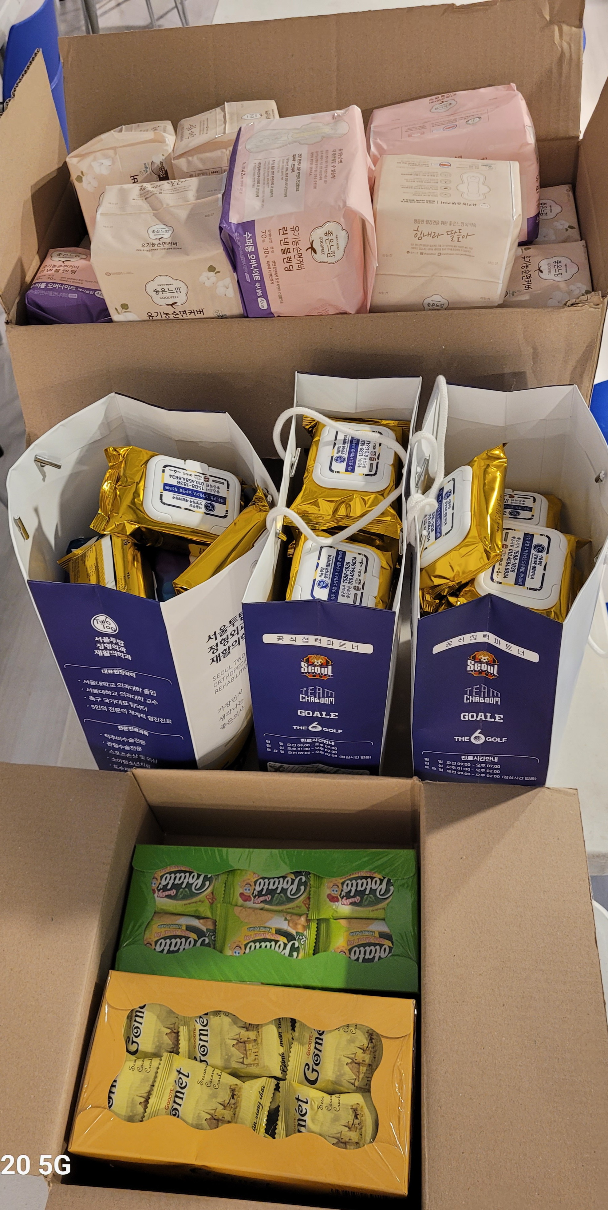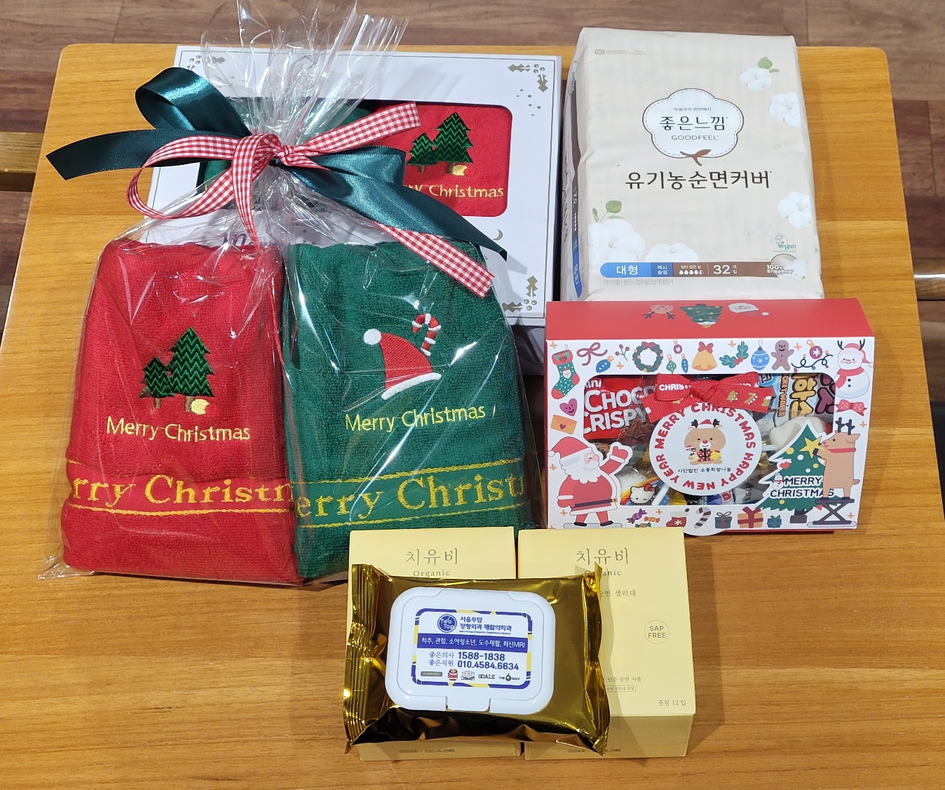 2024년 10월 수동교회 사회복지부에서 후원받은 생리용품을 거여초와 방이중 학생들에게 전달