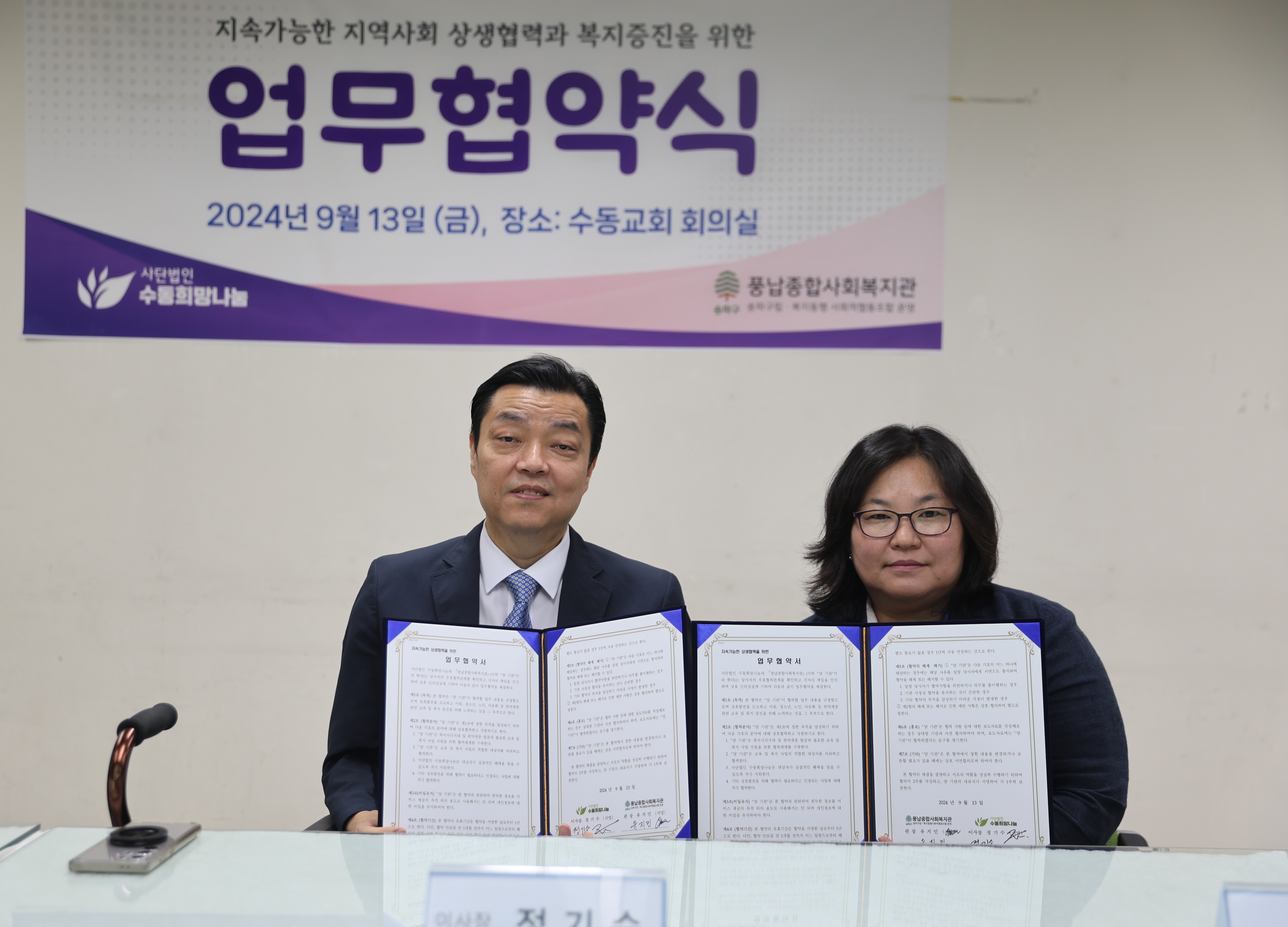 2024년 9월 13일 사단법인 수동희망나눔과 풍납종합사회복지관의 업무협약식